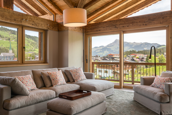 Ein Leben auf der Sonnenterrasse mit den Kitzbüheler Alpen zu Ihren Füßen. Genießen Sie den Ausblick auf den schönen Urlaubsort Kirchberg in Kitzbühel und auf die atemberaubende Landschaft von Kitzbühel.